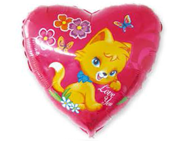FM с рисунком 18" Сердце 201701 Котик фольга